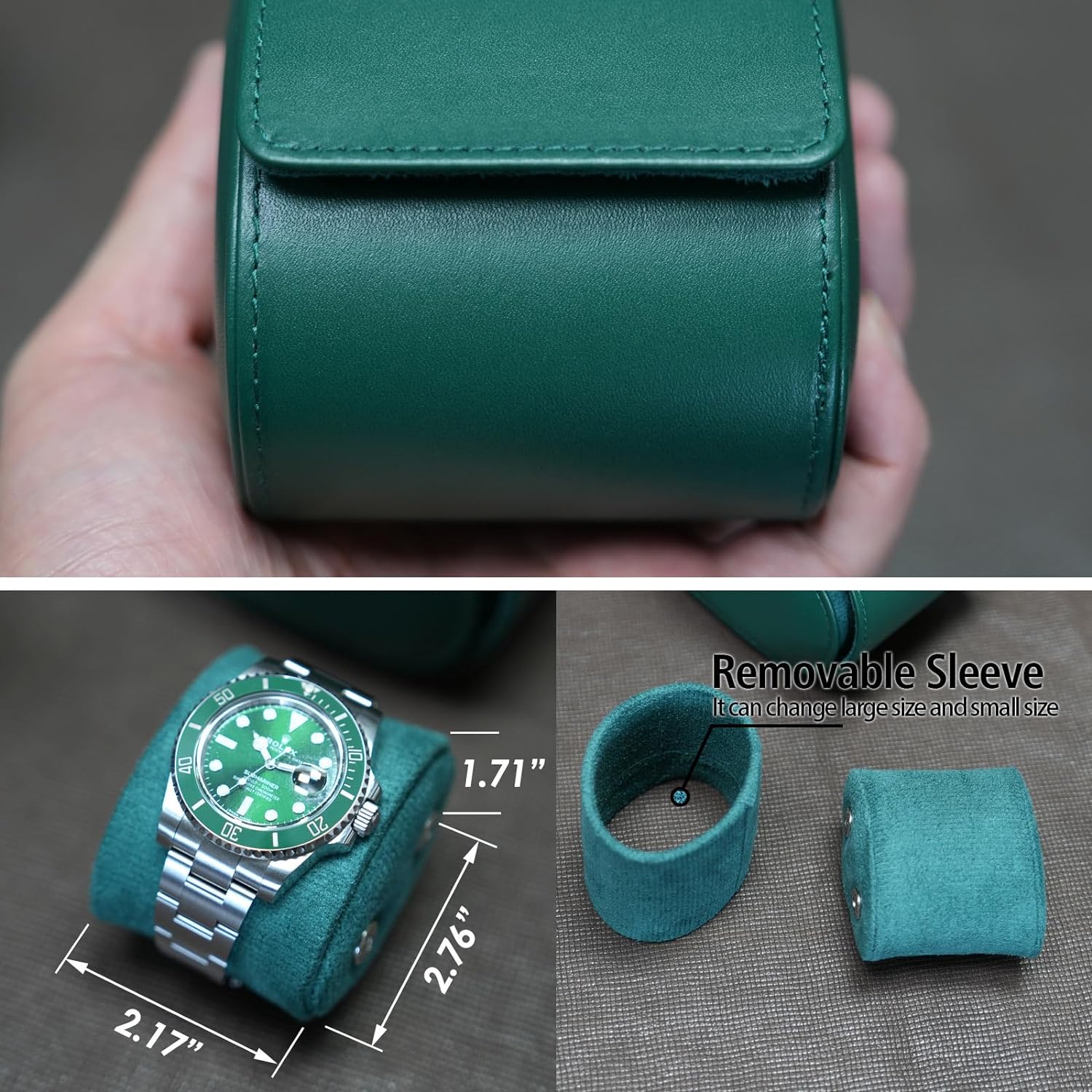 - Sichere Aufbewahrung: Die Uhrenbox hat eine gute Struktur, die verhindert, dass Ihre Uhr auf Reisen aneinander reibt. Und alle Metallknöpfe auf dem inneren Kissen sind eingebettet, machen Sie sich keine Sorgen, dass es die Uhr zerkratzen wird