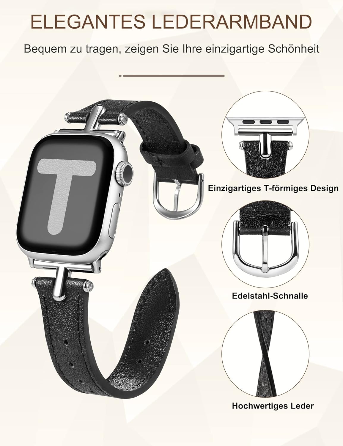 - 【Einzigartiger Stil】Kompatibel mit apple watch armband leder frauen nehmen ein einzigartiges und elegantes T-förmiges Metallschnallendesign an, das Ihrer Uhr einen raffinierten, professionellen Look verleiht und es von traditionellen Leder iwatch