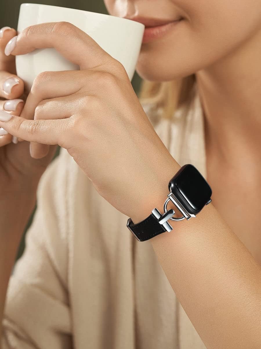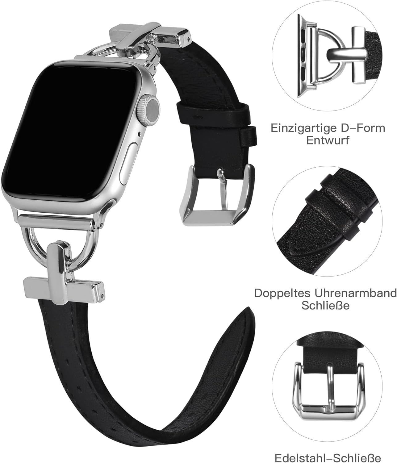 - 【Einzigartiges Design】Wearlizer kompatibel mit Apple Watch Lederarmband 41mm verfügt über ein einzigartiges und elegantes D-förmiges Metallschnallendesign, das es von traditionellen Lederarmbändern abhebt. Die elegante, grosszügige und