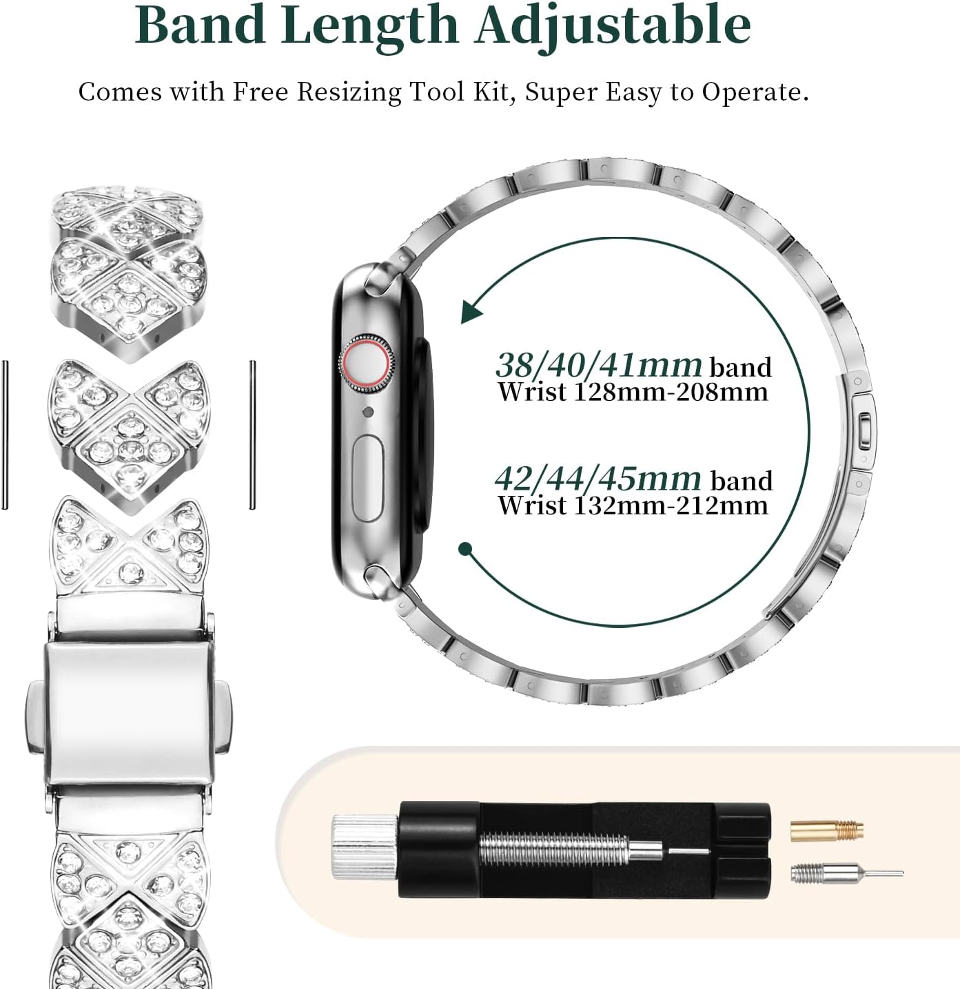 - Elegantes Design: Unser Schmuck Metall Armbänder für Apple Watch ist aus blumenförmiger Uhrenglieder, die fest mit Strasssteinen besetzt sind, verleihen Ihrer Apple Watch ein attraktives Flair und die 12 mm Breite sorgt für einen femininen und