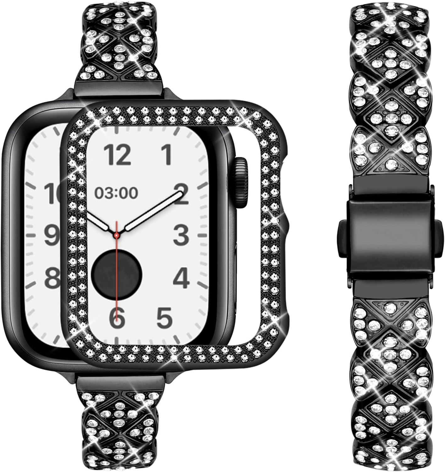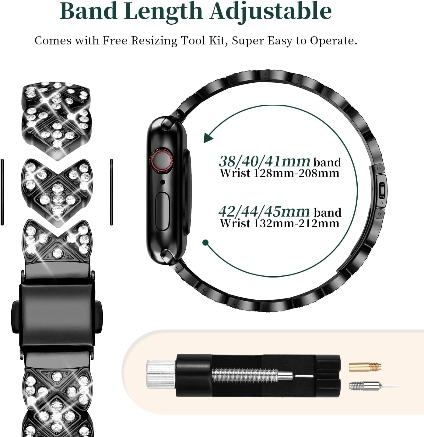 - Inhalt der Box: Ein Edelstahlarmband für iWatch Series SE 6 5 4, eine Bling Schutzhülle zum Schutz des Displays, ein Gliederentferner zur einfachen Längenanpassung, ein Produkthandbuch, eine Qualitätssicherungskarte und zwei