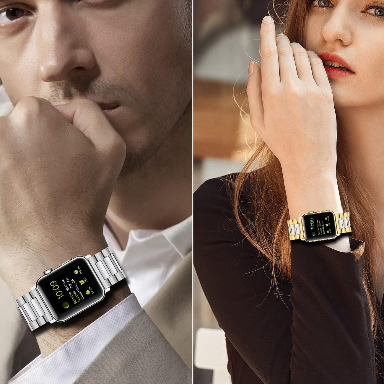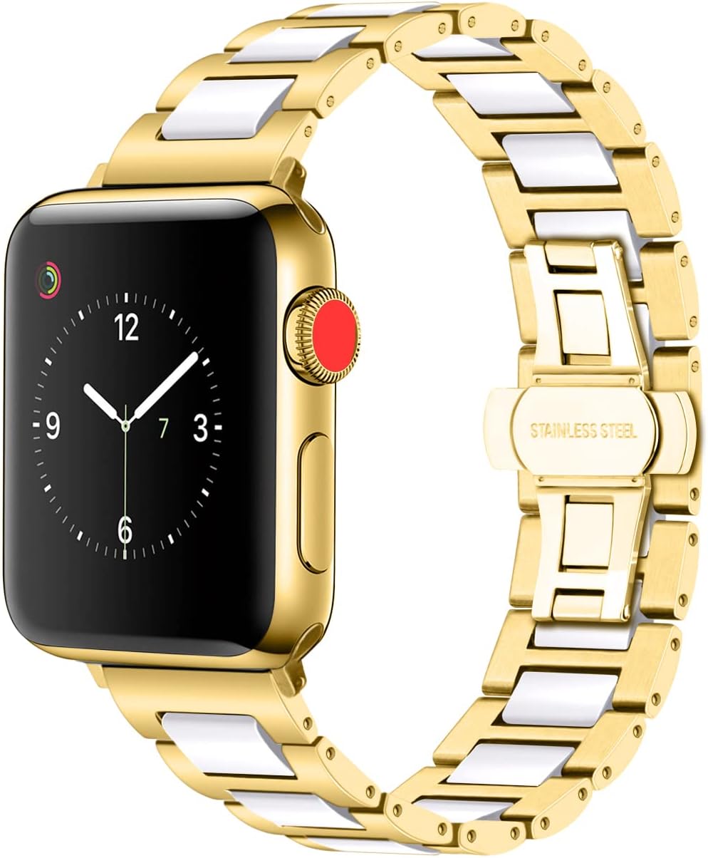 - Mehrere Farben erhältlich: Stilvolles Design und mehrere Farben: weisse, schwarze, blaue Keramik, silber-gold, roségoldene PVD-Plattierung, Edelstahl, perfekt passend zu für Apple Watch und geeignet für viele Anlässe wie Büro, Party und