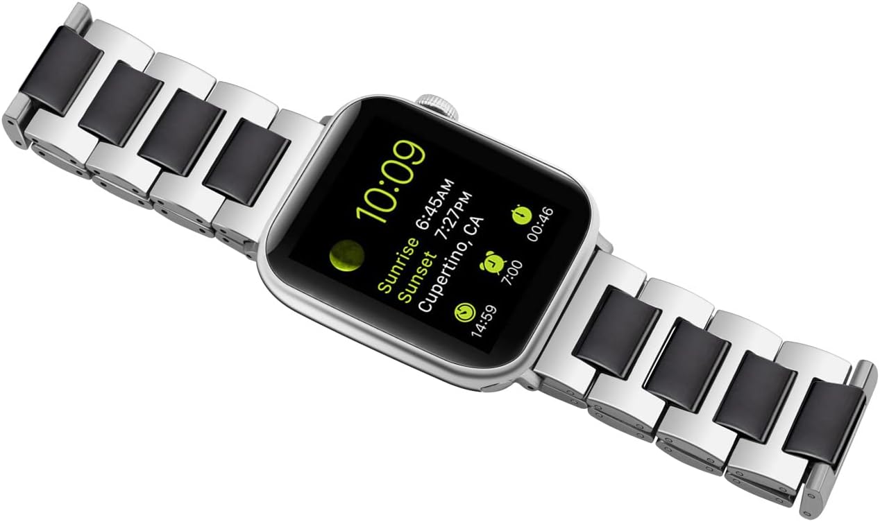 - Elegantes Keramik Armband für Apple: Einzigartige Kombination aus Keramik und Edelstahl Uhrenband, zarte glänzende Keramik in der Mitte mit glänzendem Edelstahlrahmen. Jedes Stück Keramik wird in aufwendiger Produktion gefertigt und besteht aus