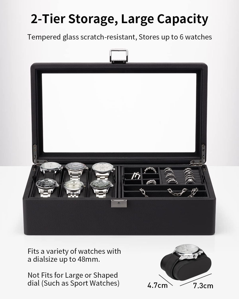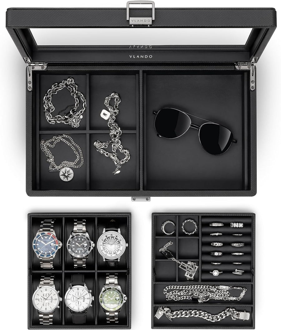 Vlando Uhrenbox Uhrenkasten mit Glasdecekel, Watch Box für Herren, Uhrenaufbewahrung Schmuckaufbewah