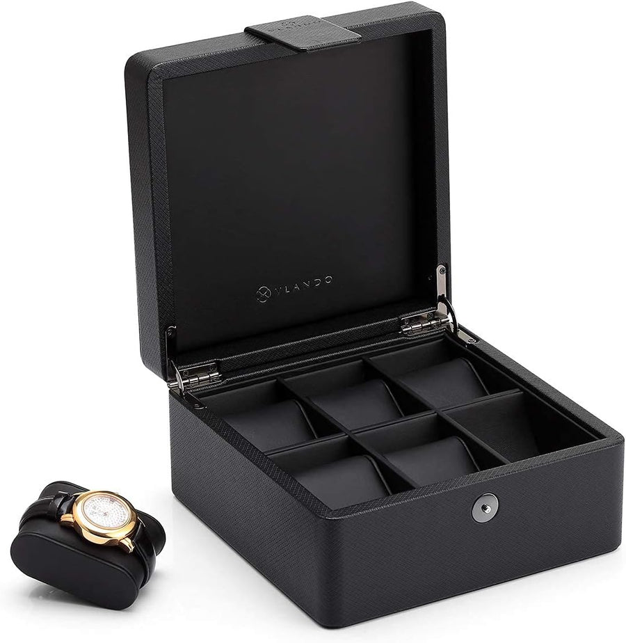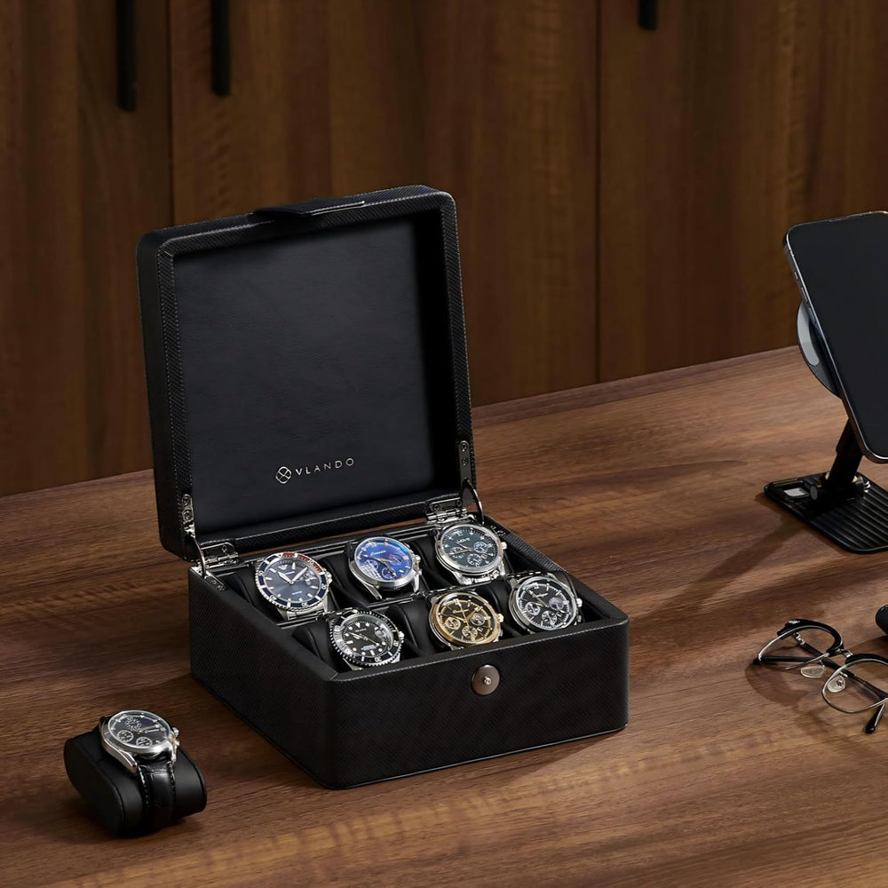 Vlando Uhrenbox Herren, 6 Uhren Uhrenkasten Leder, Watch Box Uhrenaufbewahrung, Uhrenkasten mit PU U