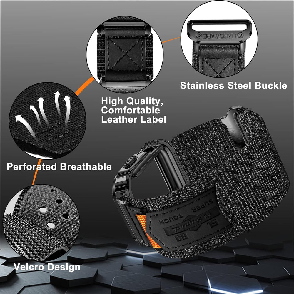 SUPLINK Metallgehäuse mit Nylonband Kompatibel mit Apple Watch Armband 40/41mm, Edelstahl Schutzhüll