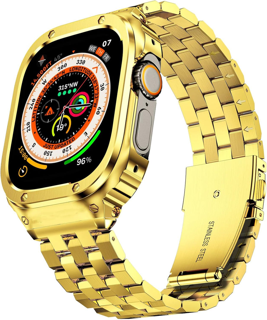 SUPLINK Edelstahlgehäuse mit Band Kompatible Apple Watch Armbänder 49mm,Robuste Schutzhülle aus Edel