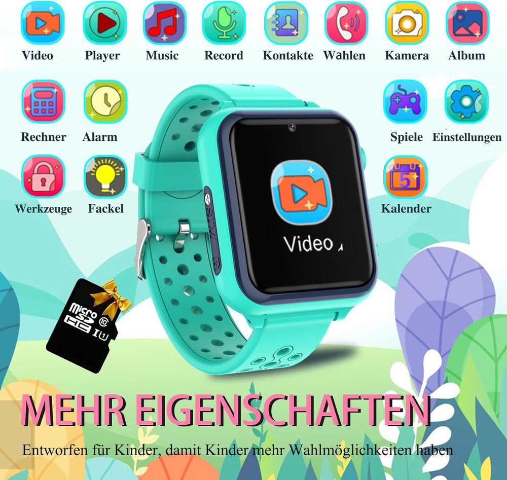 Smartwatch Kinder , Spiele , Telefon für Mädchen und Jungen ( Grün), Grün