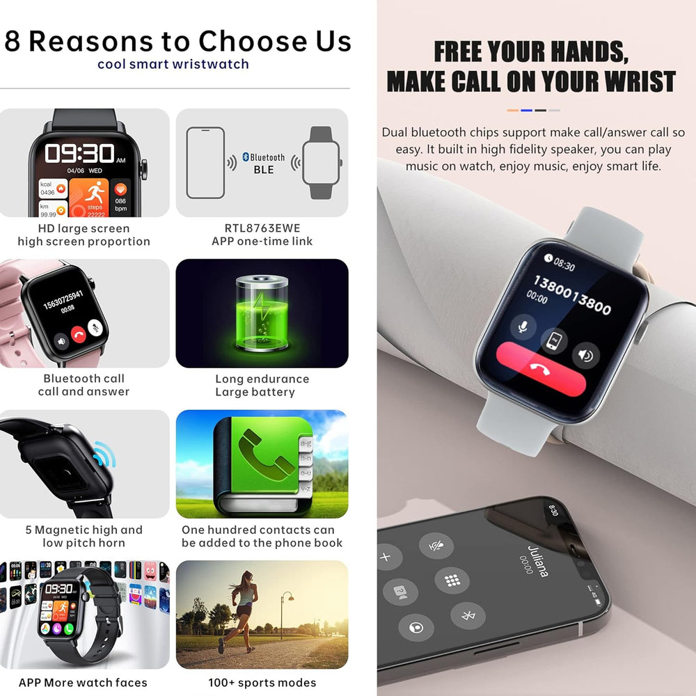 Smartwatch Damen mit Telefonfunktion, 1,8 Zoll HD Touchscreen Armbanduhr Pulsuhr mit 123 Sportmodi S