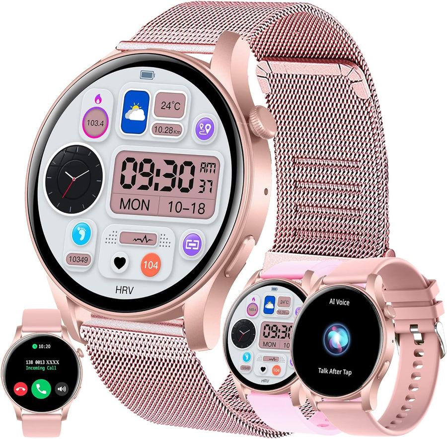 Smartwatch Damen mit Telefonfunktion, 1,43” AMOLED Fitnessuhr mit 100+ Sportmodi, Pulsmesser, Schlaf
