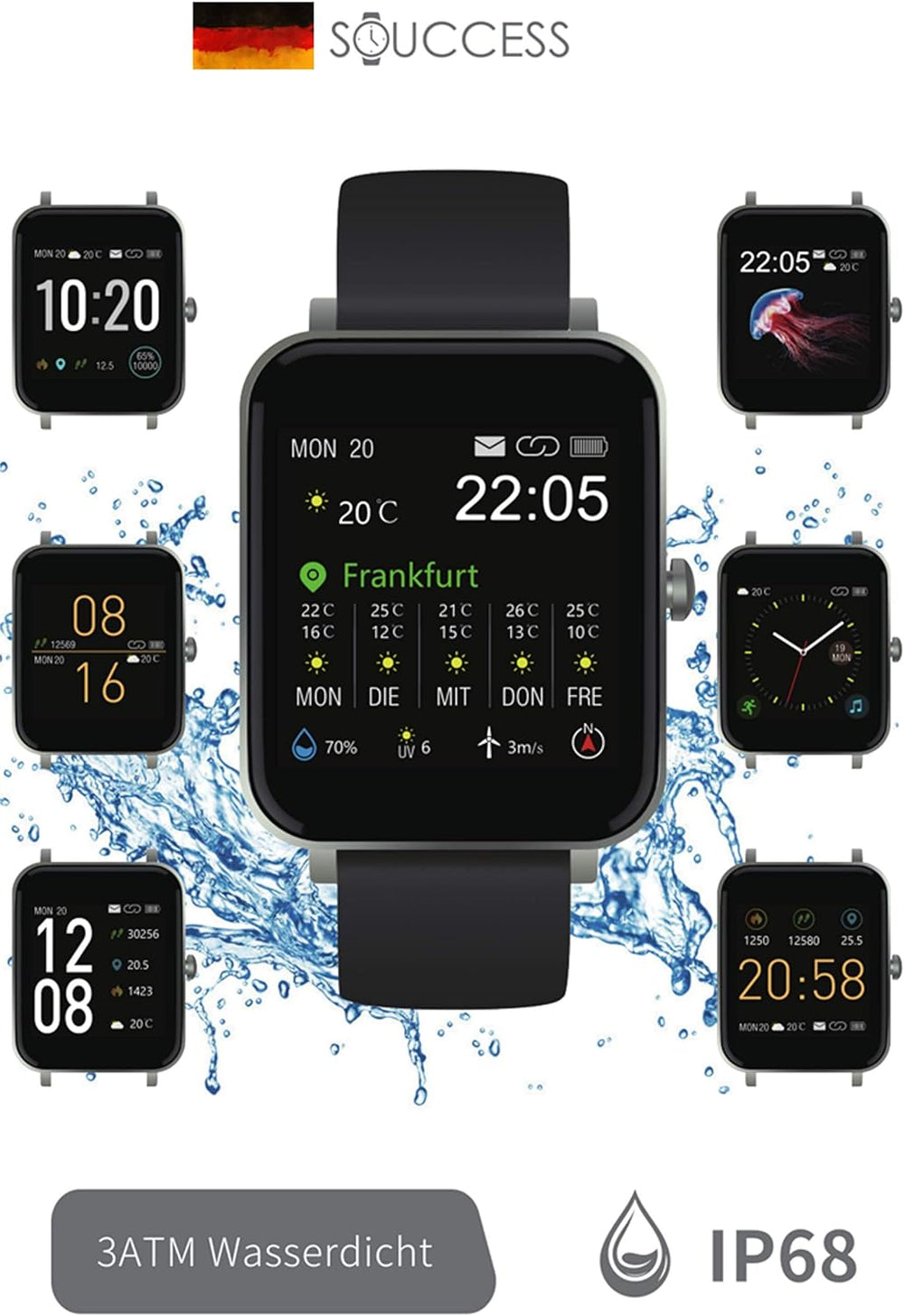 SOUCCESS FITNESSUHR MIT Full Touch Display, SMARTWATCH Always ON Display, FITNESSTRACKER, PULSMESSER