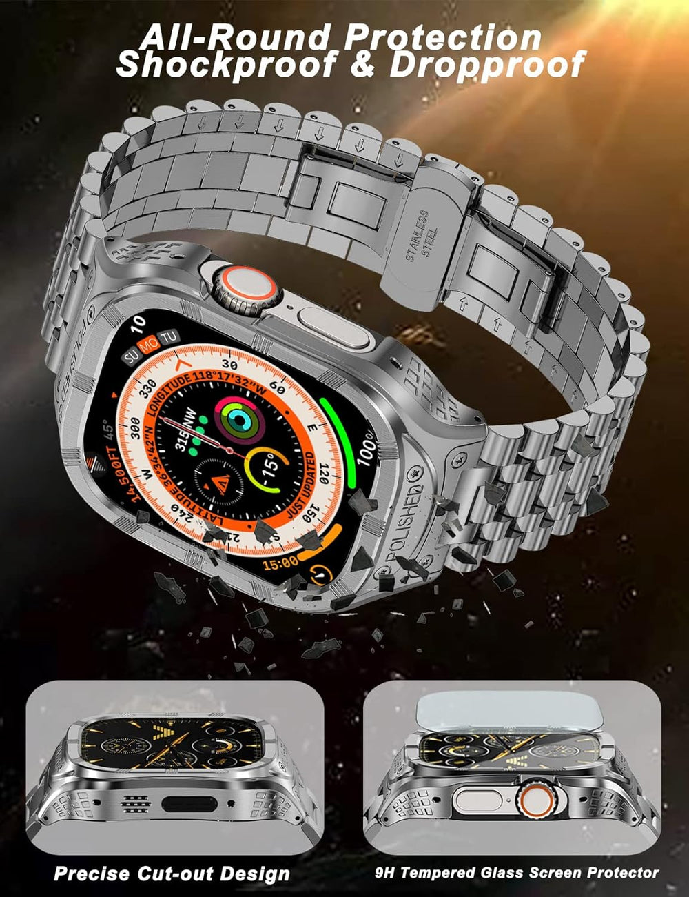 San Jeirie Edelstahlband mit Gehäuse für appl watch Ultra 1/Ultra 2 armband 49mm,Robustes Apple Watc