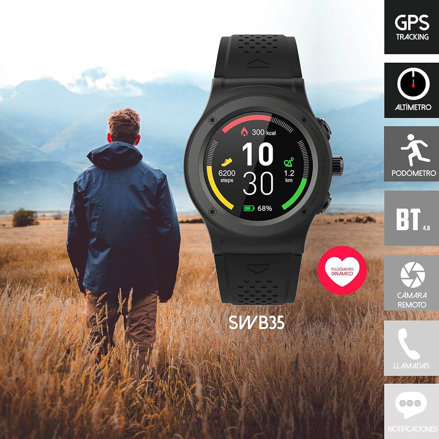 Radiant Manhattan Smartwatch Kollektion Schwarz mit Silikonband IP68 35 mm RAS10101, Schwarz, Streif