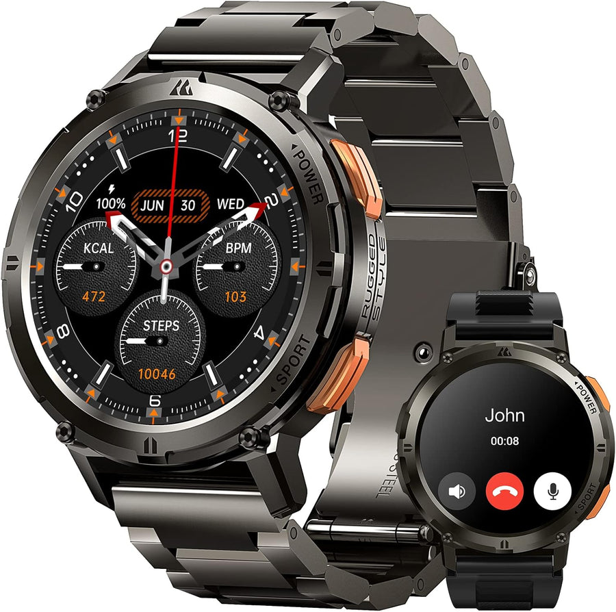 KOSPET Smartwatch Herren,1,43" AMOLED Always-On Display Fitnessuhr mit Telefonfunktion, 60+Tage Supe