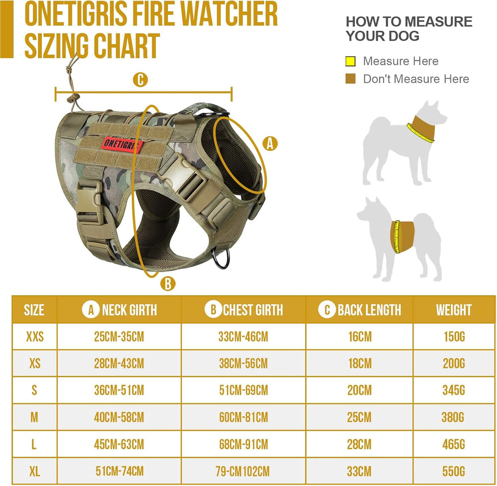 OneTigris Hundegeschirr, FIRE WATCHER Taktische Geschirr Sicherheitsgeschirr Hunde Hundeweste mit 1