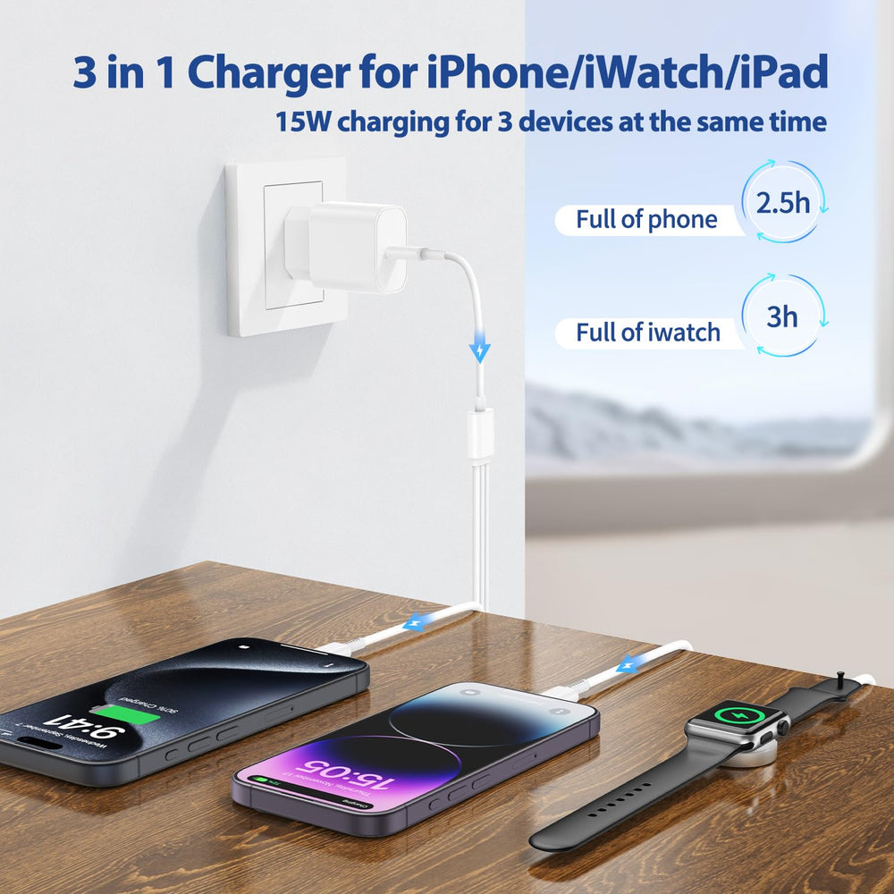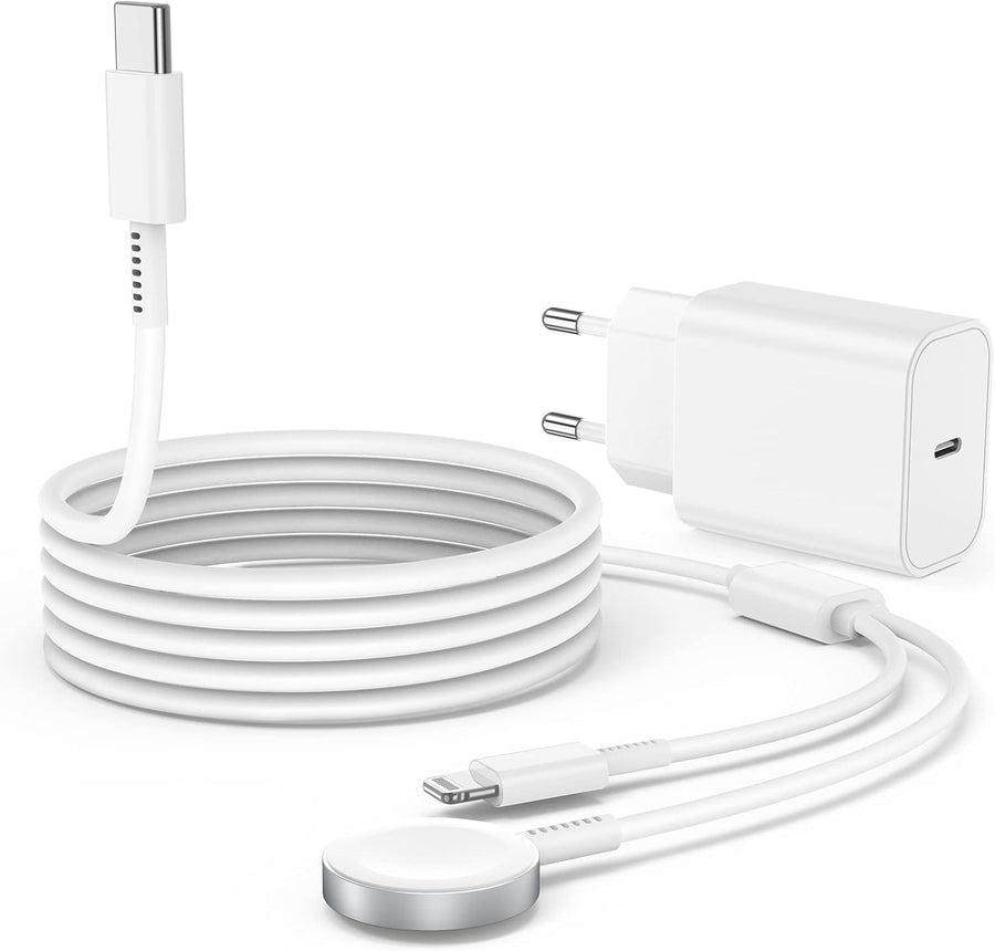 Apple Watch Ladekabel Original USB C für iWatch und iPhone, 3 in 1 Kabel 2M mit Ladegerät iPhone Sch