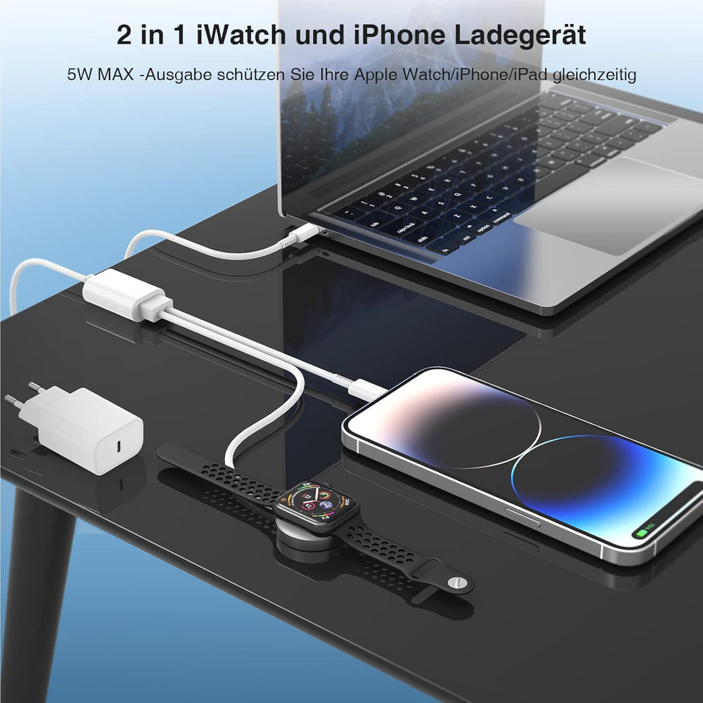 Jeenek 2-in-1 Ladekabel für Apple Watch und iPhone, 2M USB C iWatch Ladegerät, PD 20W iPhone Schnell