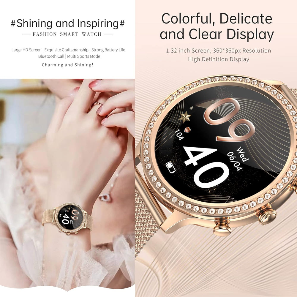 Smartwatch Damen mit Telefonfunktion Diamond, 1.32" Damenuhr mit Anruffunktion ,Menstruationszyklus