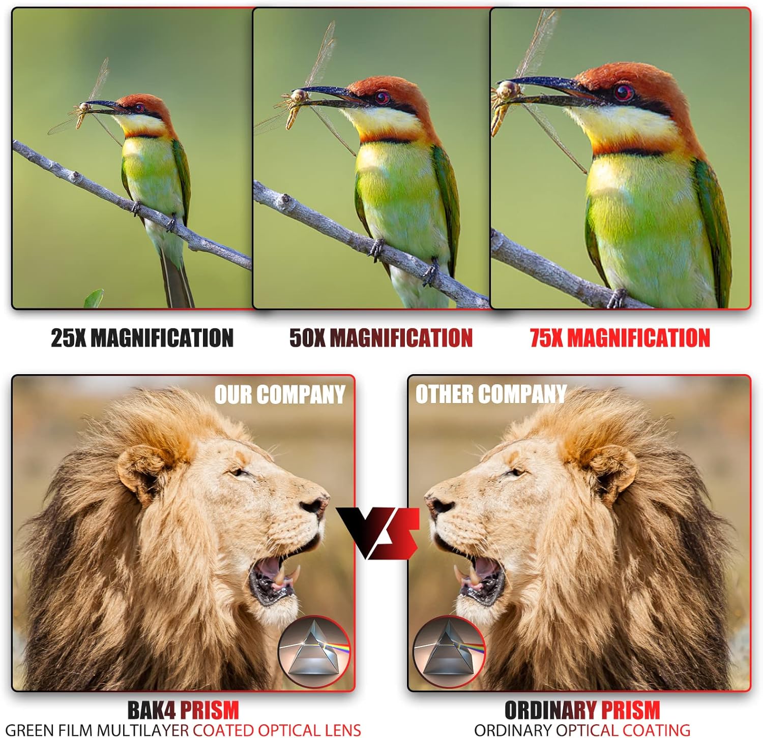 - 🐦【Premium FMC Optic Lens】 - Das vollständig mehrfach beschichtete 80mm Objektiv bietet ein breites Sichtfeld. Die hochwertige BAK4-Porro-Prismenoptik im Spektivbereich erhöht die Lichtdurchlässigkeit und liefert helle und scharfe Bilder.