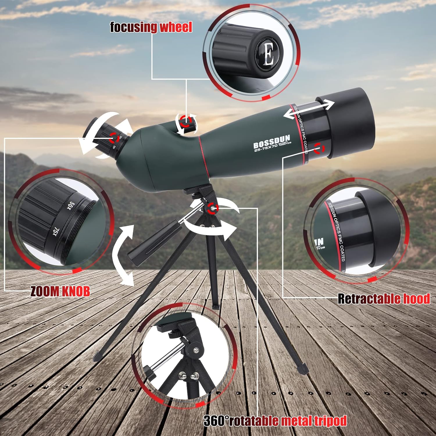 - 🐦【Leistungsstarkes Spektiv 25-75x70】- Einstellbare 25- bis 75-fache Vergrösserung und dynamisches 80mm Fokussiersystem für grosse Objektivlinsen, mit dem Sie Ihr Ziel einfach vergrössern können. Das ergonomische Design des um 45 Grad geneigten