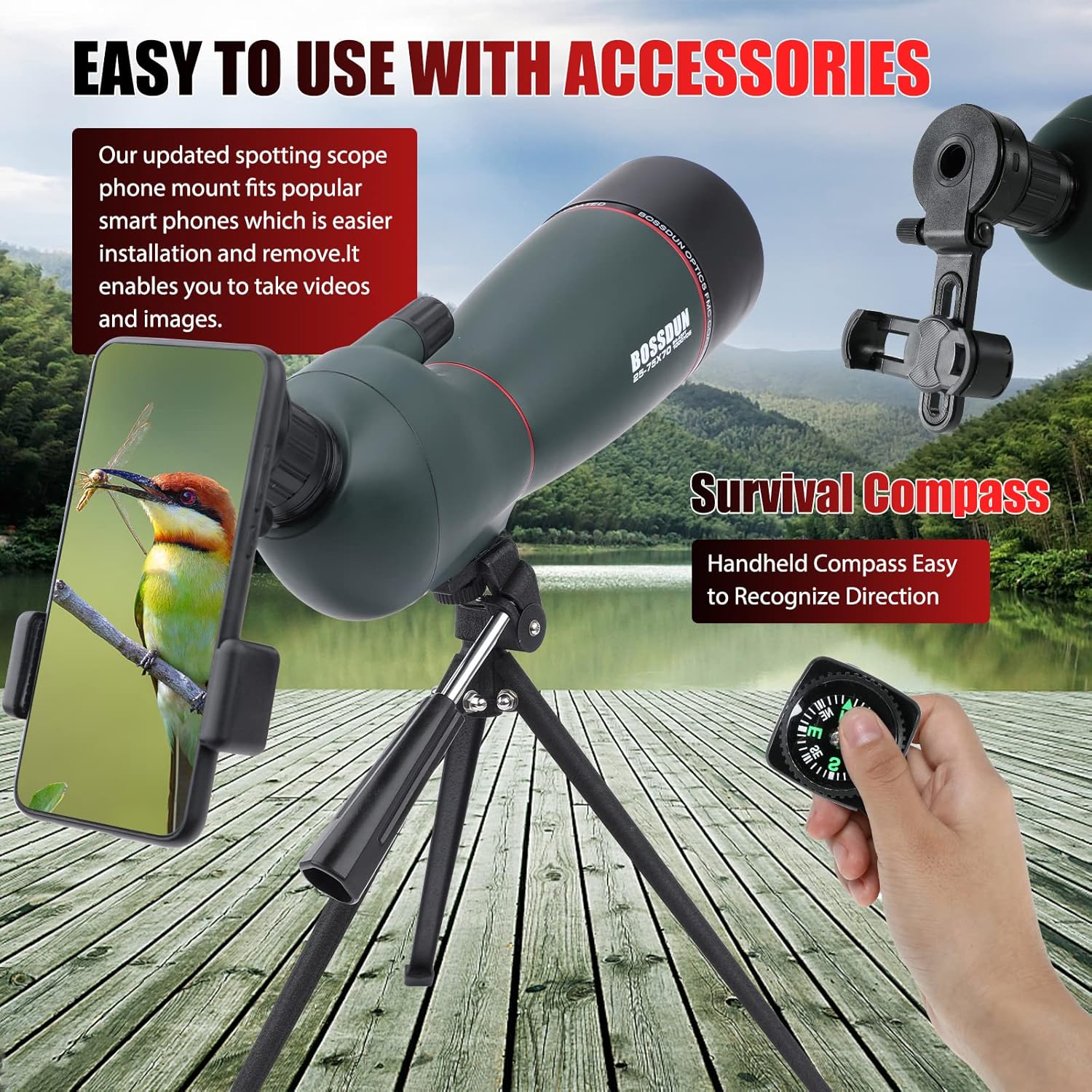 - 🐦【Spektiv mit Stativ Smartphone Adapter】 - Stabiles Stativ, praktischer Smartphone-Adapter und robuste Tragetasche sind im Lieferumfang enthalten und bieten Ihnen mehr Komfort beim Tragen und Verwenden. HD-Bilder und -Videos können jederzeit und