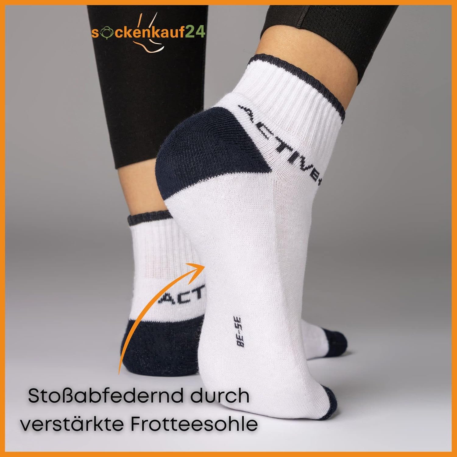 PRODUKTBESCHREIBUNGEN 6 oder 12 Paar Sport Sneaker Socken Mit verstärkter Frotteesohle - Stossabfedernd Beste Trageeigenschaften durch hohen Baumwollanteil Anti Transpiration - Klimaregulierend Angenehmer Abschlussrand - ohne Gummidruck Perfekte Passform Material: 75% Baumwolle, 22% Polyamid, 3% Elasthan Farbe: Farbmix Grössen: 39-42, 43-46 Mehr