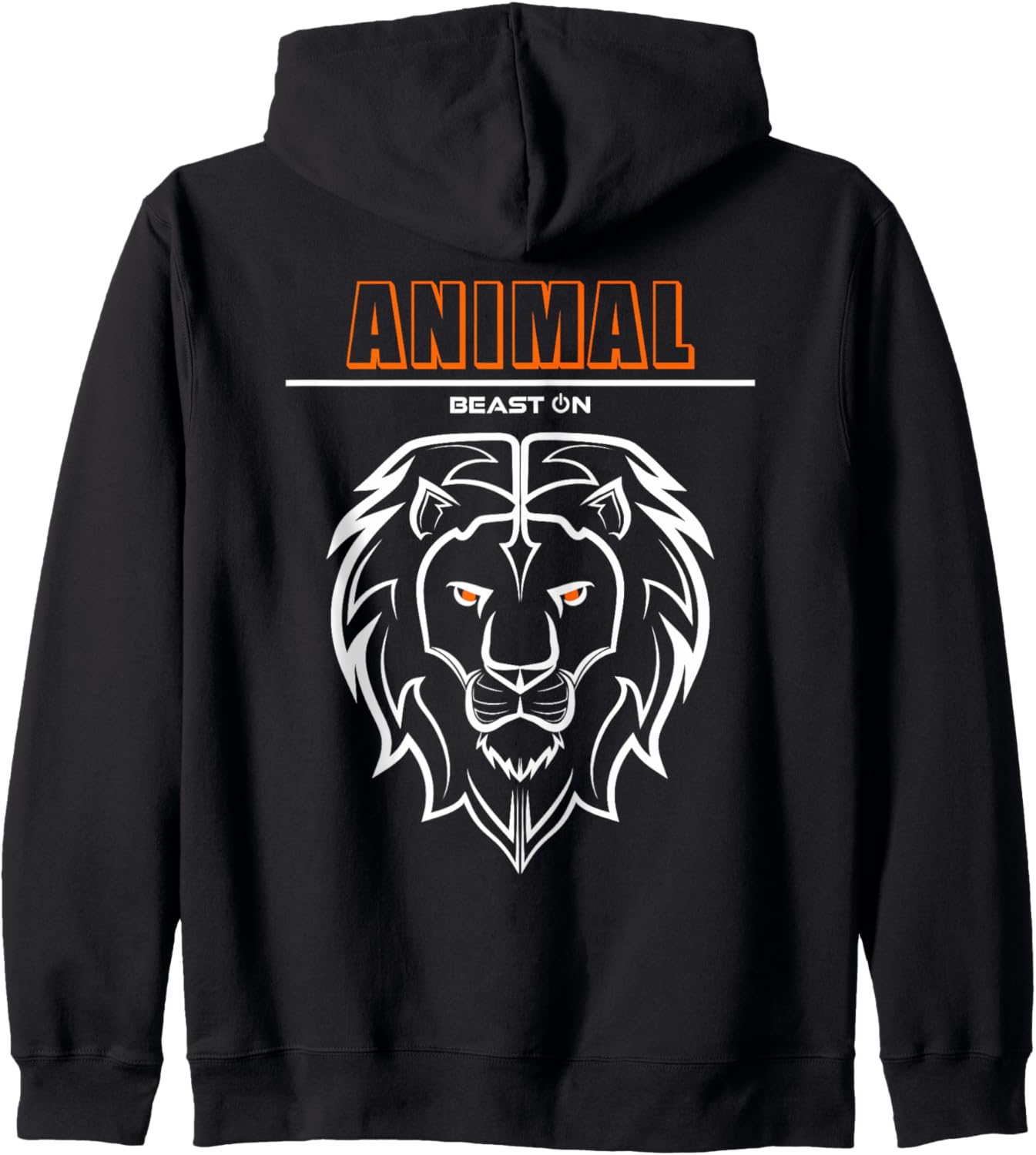 Animal Löwe Kopf Orange Rücken Design Gym Workout Fitness Kapuzenjacke