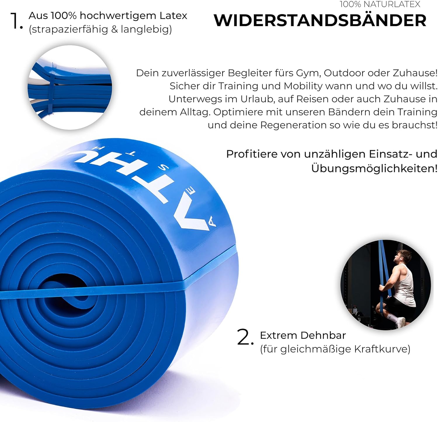 - ÜBERALL DAS PERFEKTE WORKOUT - Die ATHLETIC AESTHETICS Fitness Bänder ermöglichen dir dein Krafttraining Wann und Wo du möchtest mit einer Vielzahl von Einsatzmöglichkeiten, z.B. unterstützend als Klimmzughilfe, Gymnastikband oder als Trainingsband.