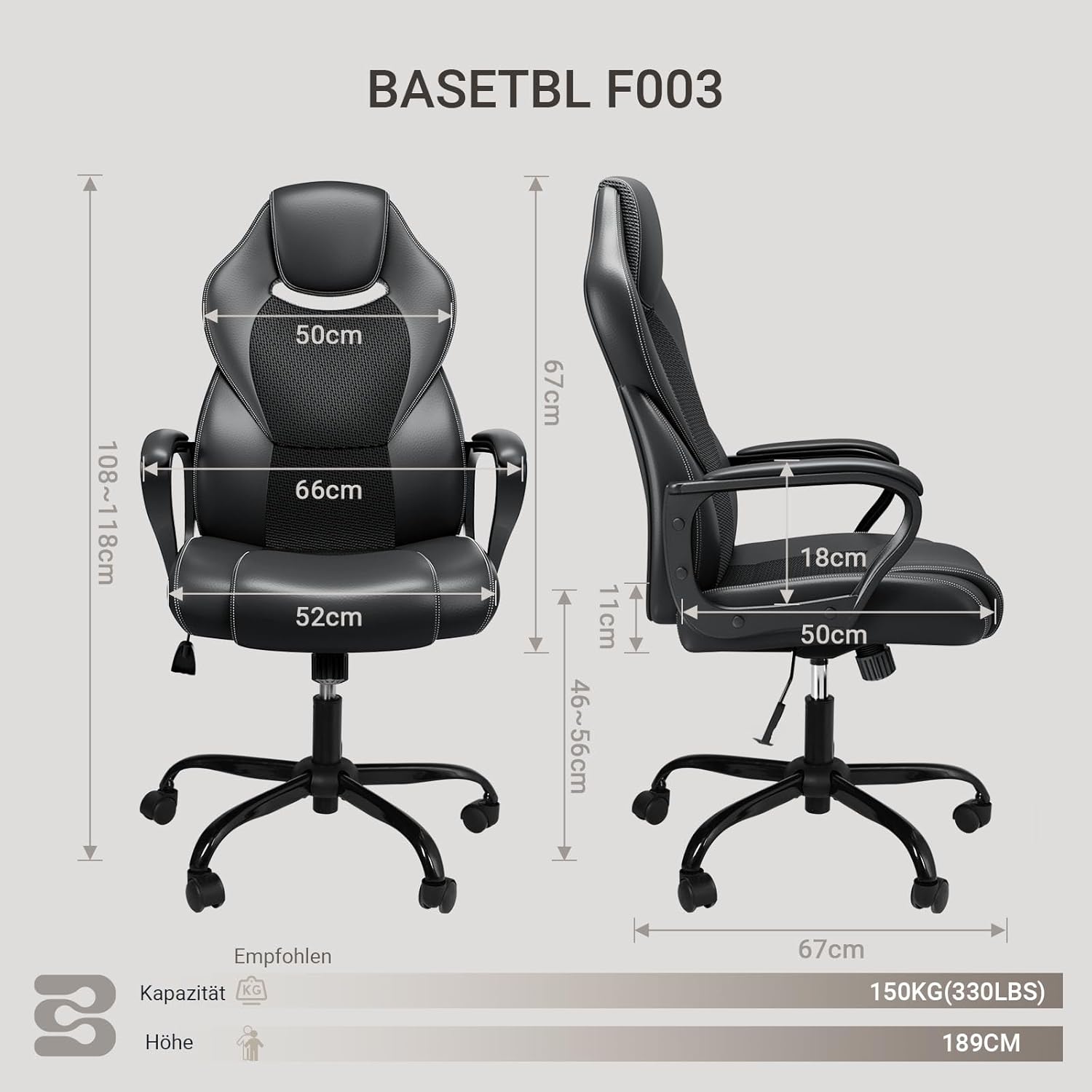 - Premium Qualität - BASETBL Bürostuhl alle Teile werden sorgfältig ausgewählt. Gaslift der Klasse 3 bestand die TÜV und SGS Zertifizieren. Die maximale Belastung von 150 kg und die robuste, robuste Metallbasis mit fünf Backen verbesserten die Sicherheit und Stabilität.