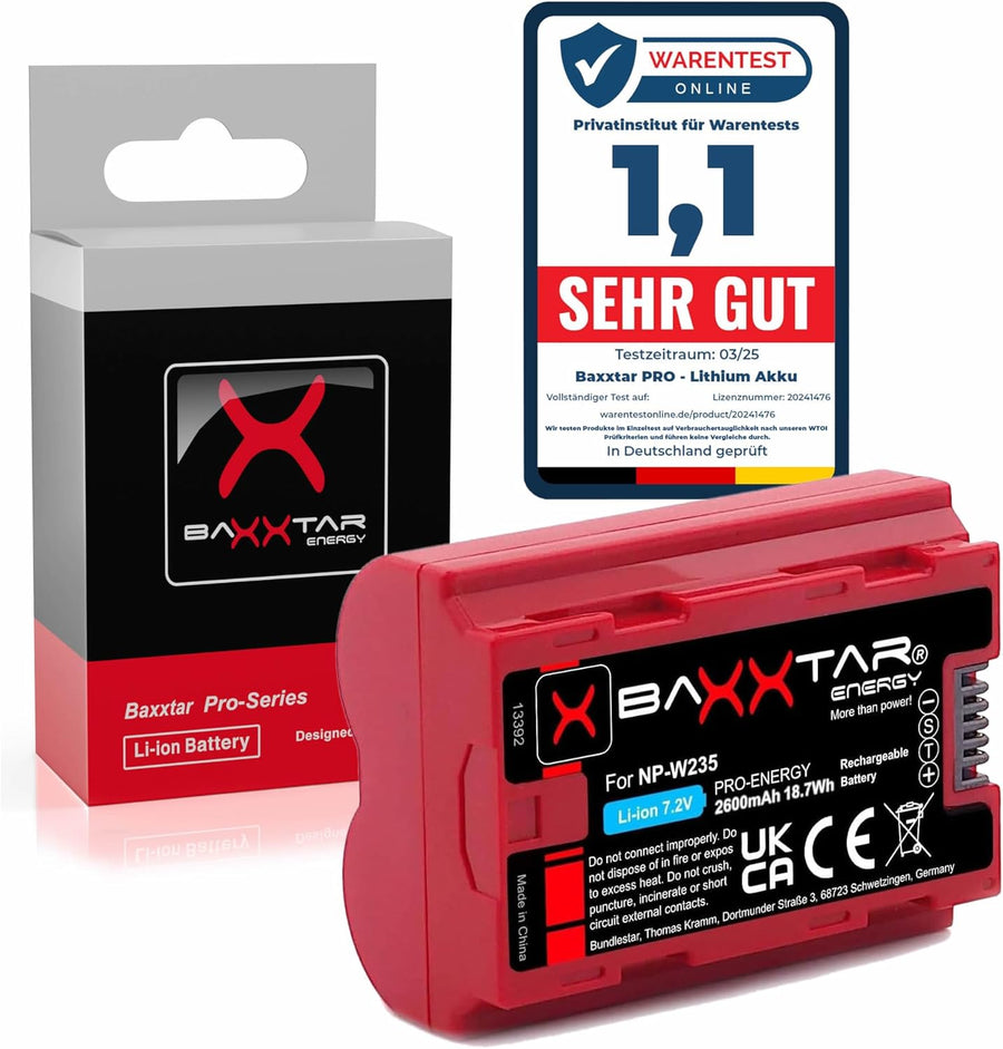 - LIEFERUMFANG: 1x BAXXTAR PRO Ersatz für Akku Fujifilm NP-W235 mit Transportschale