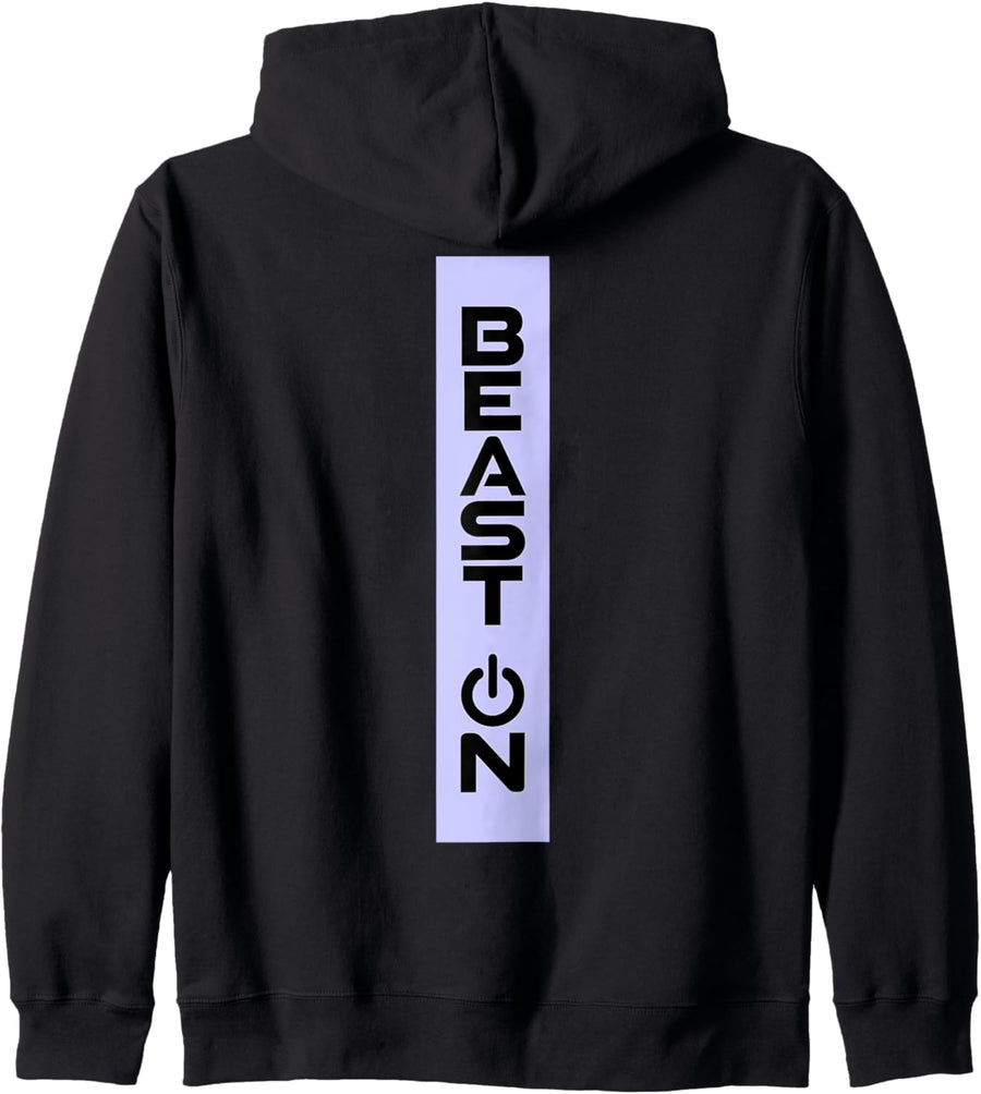 Beast ON Rücken Motiv hell lila Farbe Fitness Gym Motivation Kapuzenjacke