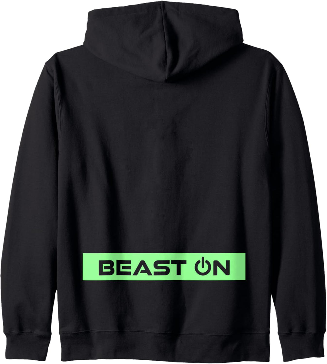 Beast ON Rücken Motiv hellgrüne Farbe Fitness Gym Motivation Kapuzenjacke