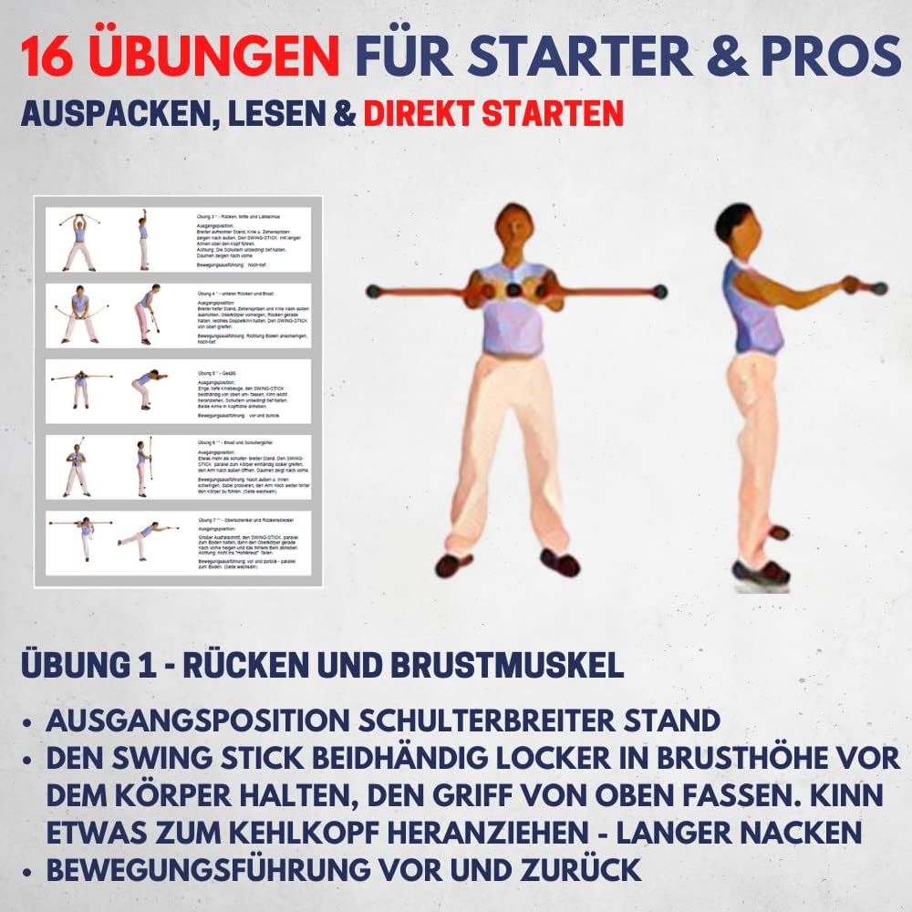 - FITNESS SCHWINGSTAB MIT 3-FACHER ANLEITUNG - Fitness Geräte zuhause ideal nutzen mit dem Trainings-Ebook im PDF Format, der beiliegenden Anleitung oder den Tipps für kostenlose Schwungstab Videotrainings