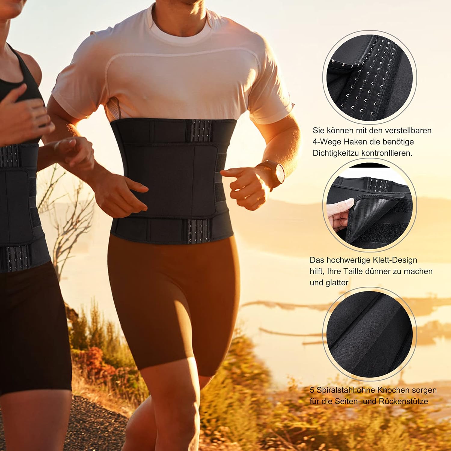 - 【DOPPELTE KOMPRESSION WAIST TRAINER】 4 Haken- und Ösen-Design lässt Ihnen, diesen Abnehmende Taillenformer für Herren an Ihre Grösse anzupassen, um eine bessere Passform zu erzielen und der starke Griff des verstellbaren Bunds kann alle Rollen und Stösse glätten. Das doppelte Kompressionsdesign der Waist Trainer Trainning Trimmer Belt bietet einen höheren Druck um Ihren Bauch und Unterbauch, glättet den Bauch effektiv, kürzt Ihre Taille, kontrolliert Liebesgriffe und hartnäckiges Bauchfett sofort.