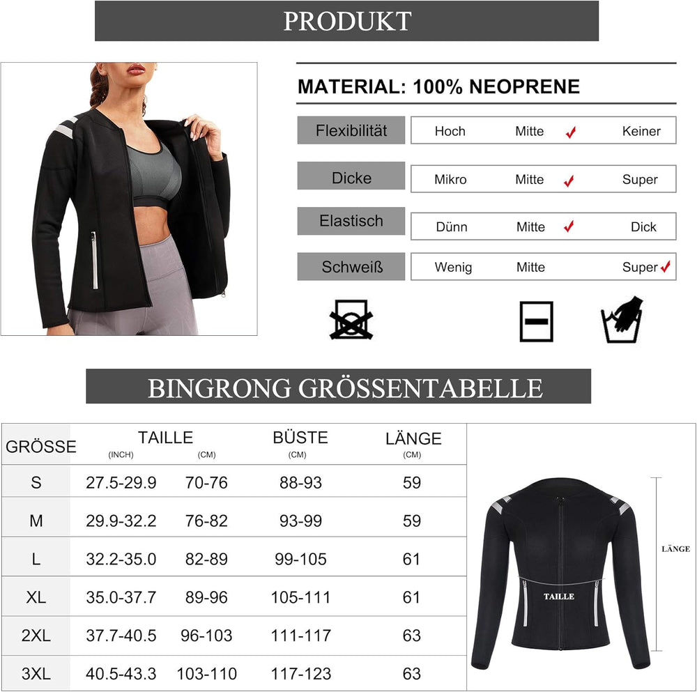 - ★ 【MODE STILVOLLE DAMEN SPORTS SANNA ANZÜGE】Diese Sauna Trainingsjacke ist mit ergonomischer, exquisiter Verarbeitung ausgestattet, um allen Körpertypen, Ihrer Form und dem maximalen Komfort gerecht zu werden. Das modische Leuchtstoffmuster in Kombination mit unseren Sauna neopren jacket ist ideal für alle Aktivitäten, insbesondere zum Laufen und Trainieren in der Nacht. Lässt Sie im Dunkeln wie ein Stern leuchten. Grossartig, um bei kaltem Wetter warm zu bleiben und sofort schlank zu wirken.