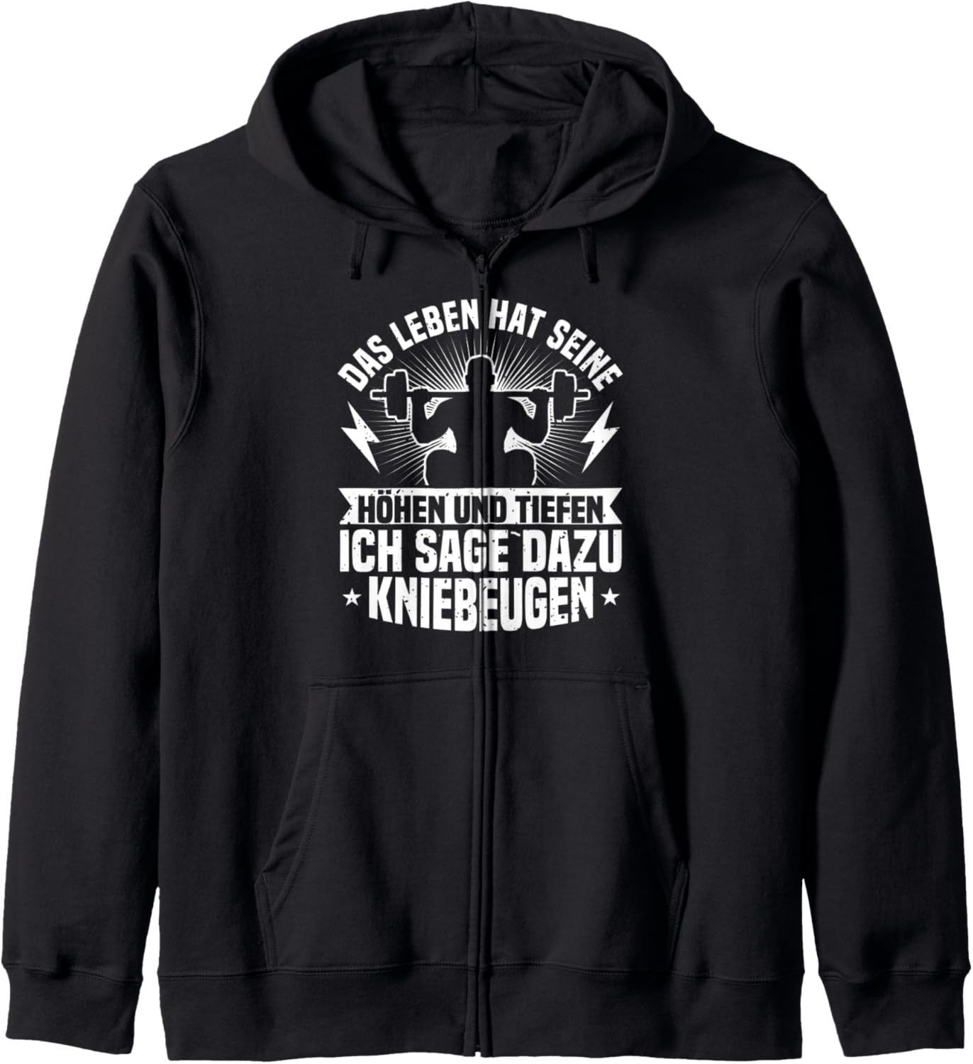 PRODUKTBESCHREIBUNGEN Lustiges Bodybuilder und Kraftsportler Motiv mit dem Spruch "Das Leben hat seine Höhen und Tiefen Ich sage dazu Kniebeugen". Perfekt beim Powerlifting oder Gewichtheben im Fitnessstudio. Tolle Pumper Idee um die Muskeln darunter zu verstecken.
