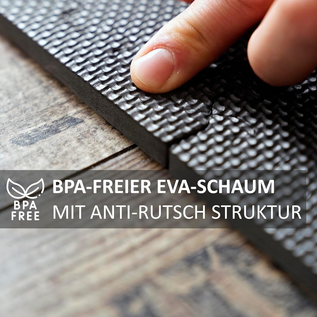 - TOP QUALITÄT: Die Schutzmatten bestehen aus hochdichten, umweltfreundlichen und ungiftigen EVA Schaum mit strukturierter Oberfläche. Sie können die Matten als Sportmatte, Fitnessboden, Trainingsmatte, Schutzmatte für Fitnessgeräte , Gymnastikmatte