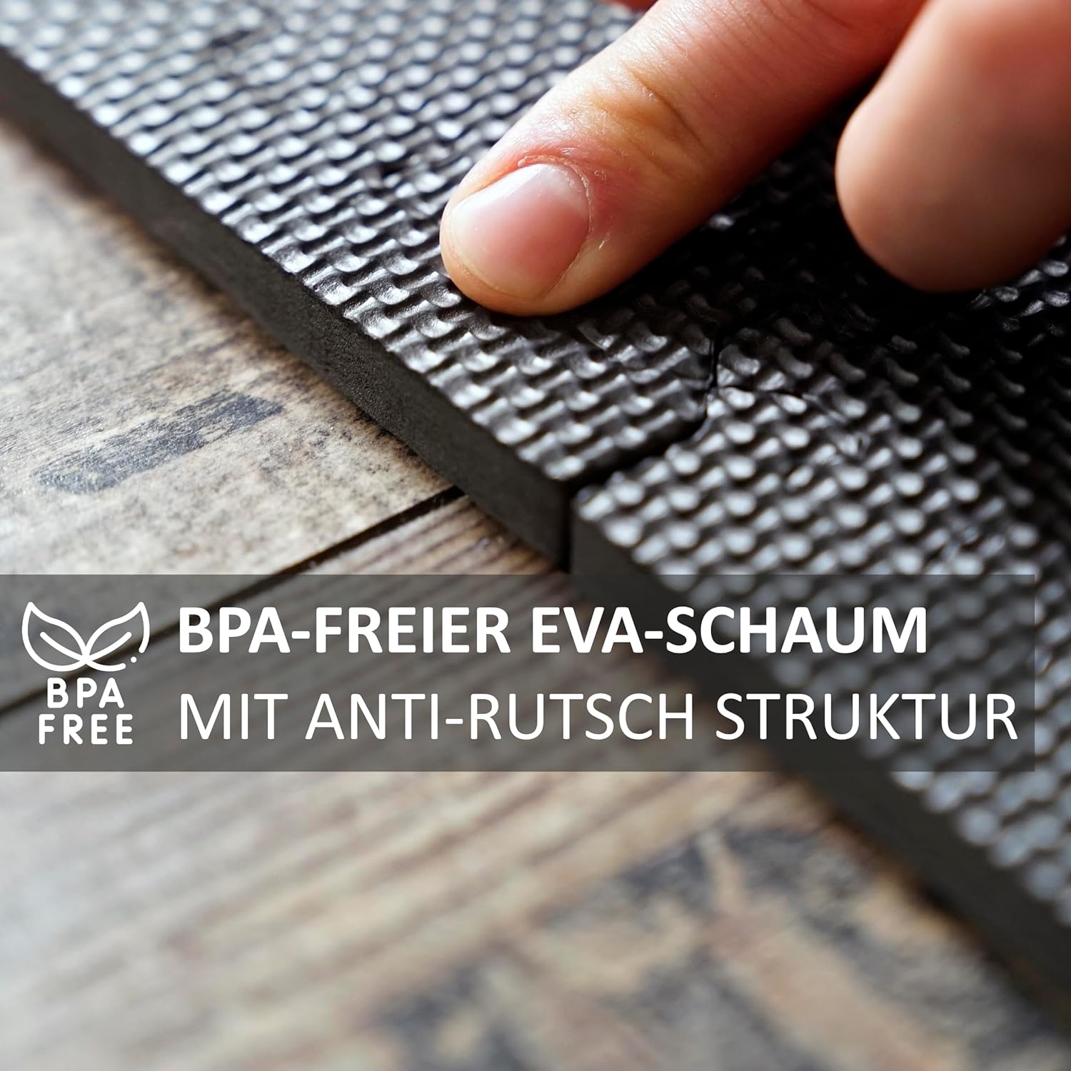 - TOP QUALITÄT: Die Schutzmatten bestehen aus hochdichten, umweltfreundlichen und ungiftigen EVA Schaum mit strukturierter Oberfläche. Sie können die Matten als Sportmatte, Fitnessboden, Trainingsmatte, Schutzmatte für Fitnessgeräte , Gymnastikmatte oder als Bodenbelag für den Hobby Keller verwenden.