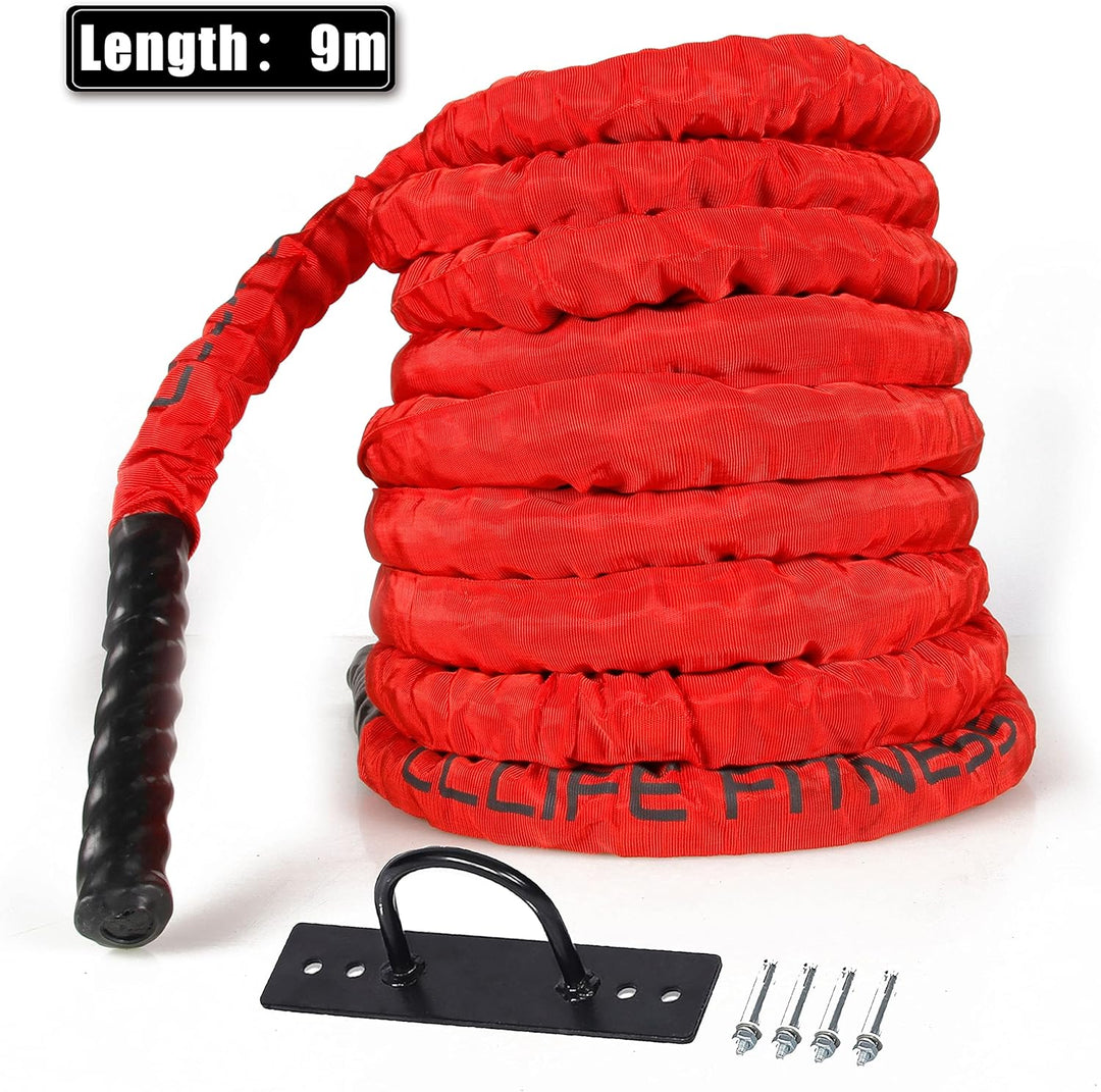 - Schlachtseilanker sind im Lieferumfang enthalten. Er ermöglicht es Ihnen, Battle Rope überall hin mitzunehmen oder auch bequem zu Hause zu trainieren.