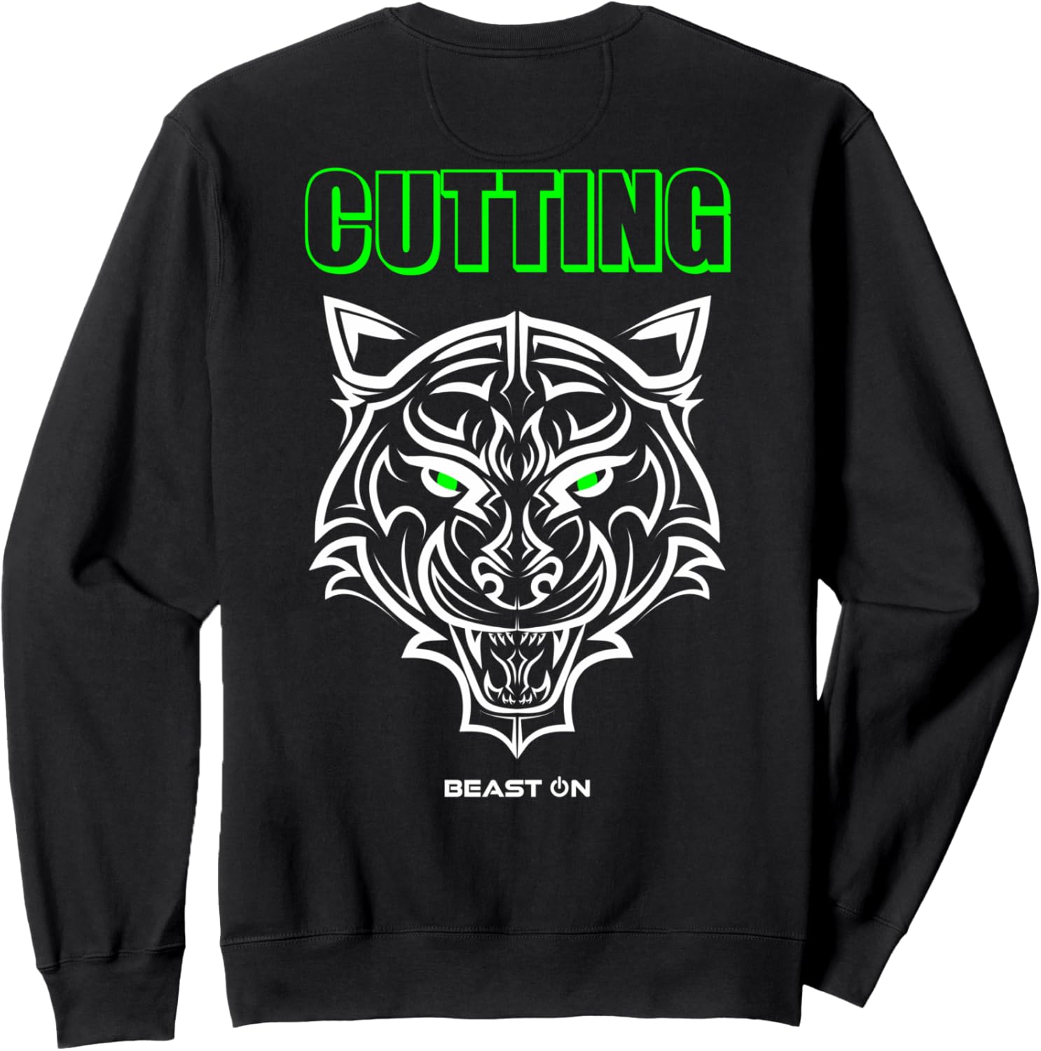 Cutting Tiger Kopf Grün Rücken Motiv Gym Workout Fitness Sweatshirt
