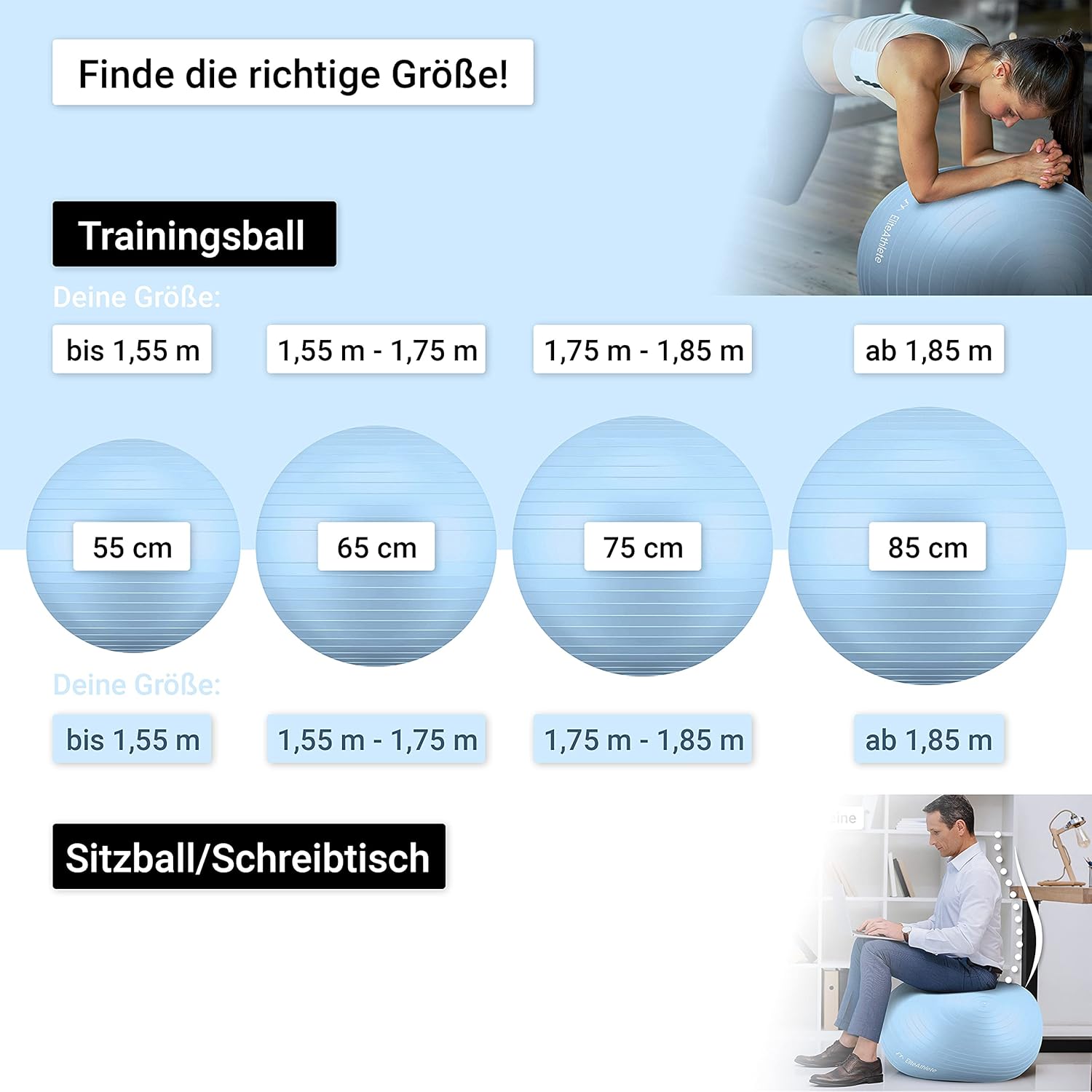 - 𝗘𝗫𝗧𝗥𝗔 𝗥𝗢𝗕𝗨𝗦𝗧 - Unsere Sitzbälle bestehen aus besonders hochwertigem + dicken Material und sind so extra robust! Erhältlich in verschiedenen Grössen von 55cm 65cm 75cm + 85cm. Eine Luftpumpe ist im Lieferumfang erhalten.