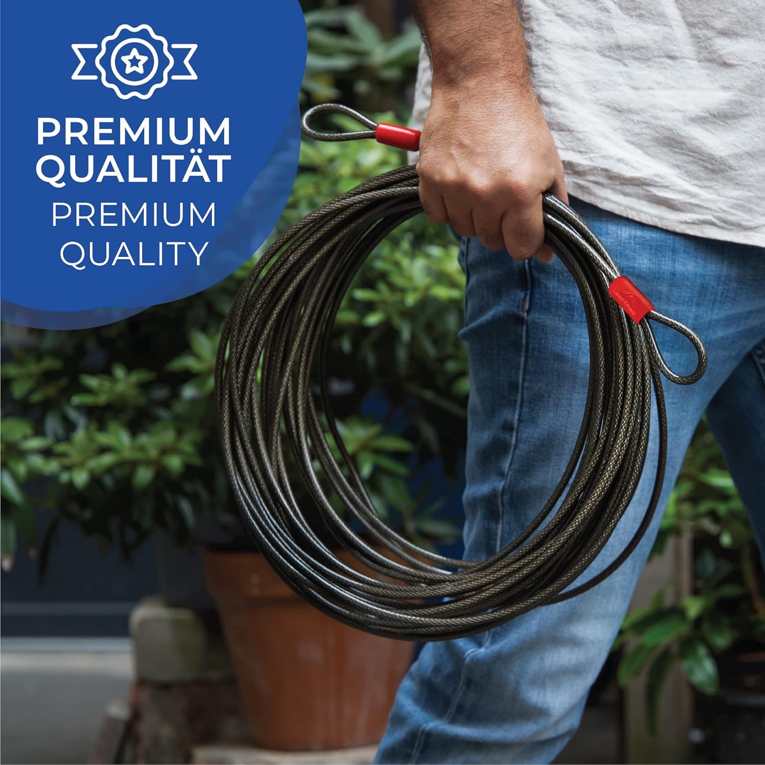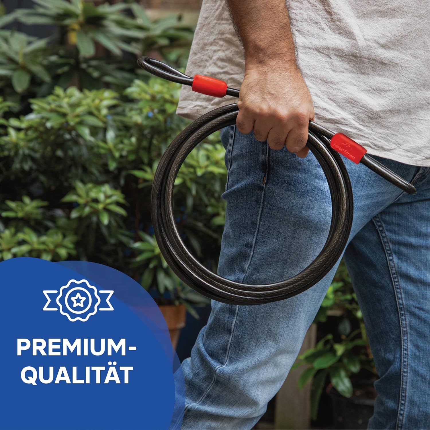 - IDEALE LÄNGE - Mit 200cm oder 500cm ist das Stahlkabelschloss für das Abschliessen von Fahrradanhängern und als Verbindung für mehrere Fahrräder. Als Variante in 76cm können Sie kleine Gegenstände sichern und mit den Kabelschlössern in 10 und 20m
