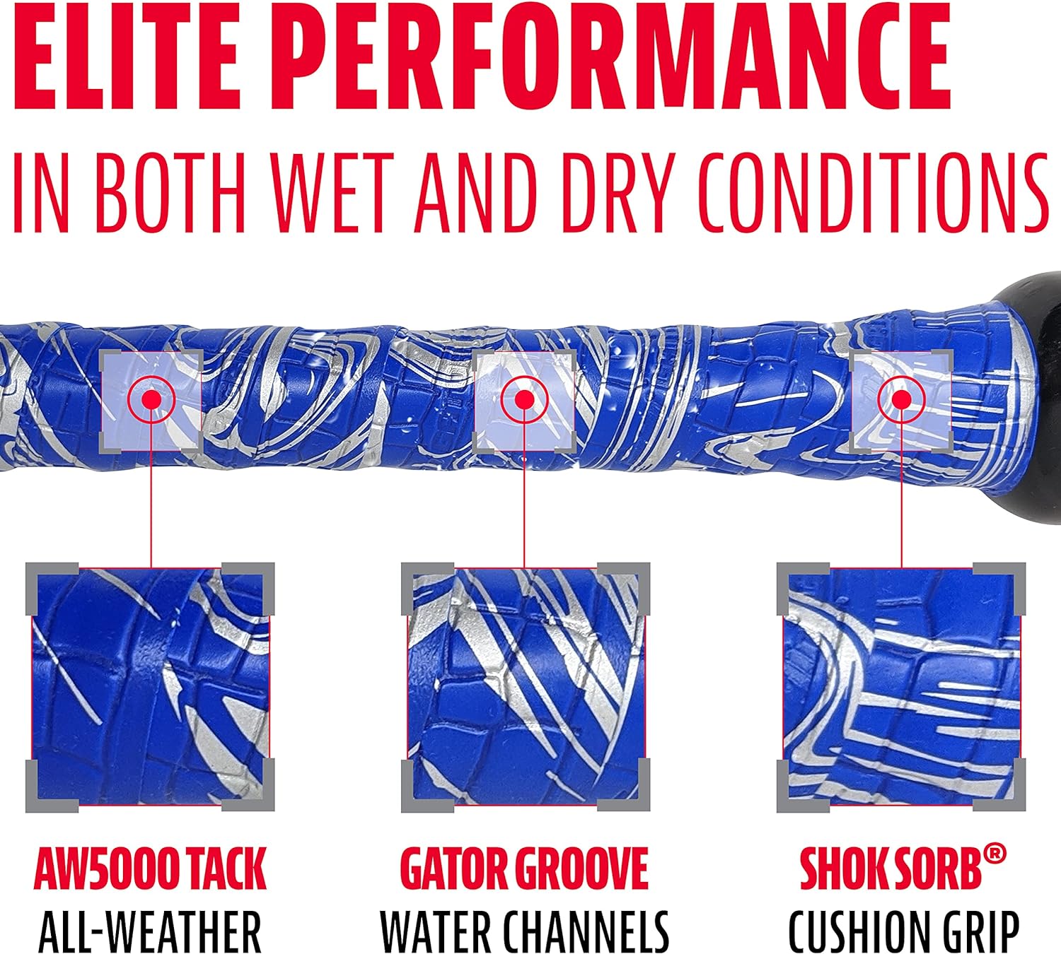 - Gator Groove: Wasserkanäle reduzieren das Rutschen auf dem Schläger beim Spielen bei nassen Bedingungen