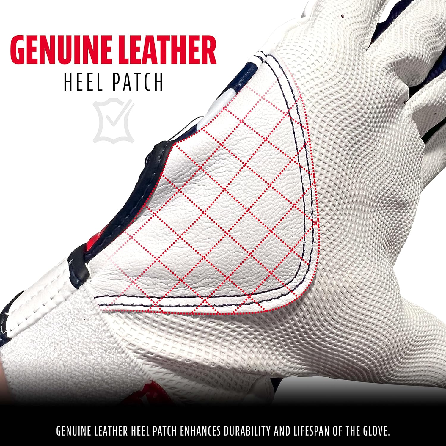 - Leder-Fersenaufnäher: Unsere MLB Classic XT-Serie verfügt über einen hochwertigen Fersenaufnäher aus echtem Leder, um die Hand während des Schlagens zu polstern Seine robusten Nähte sorgen dafür, dass es durch endlose Innings dauert