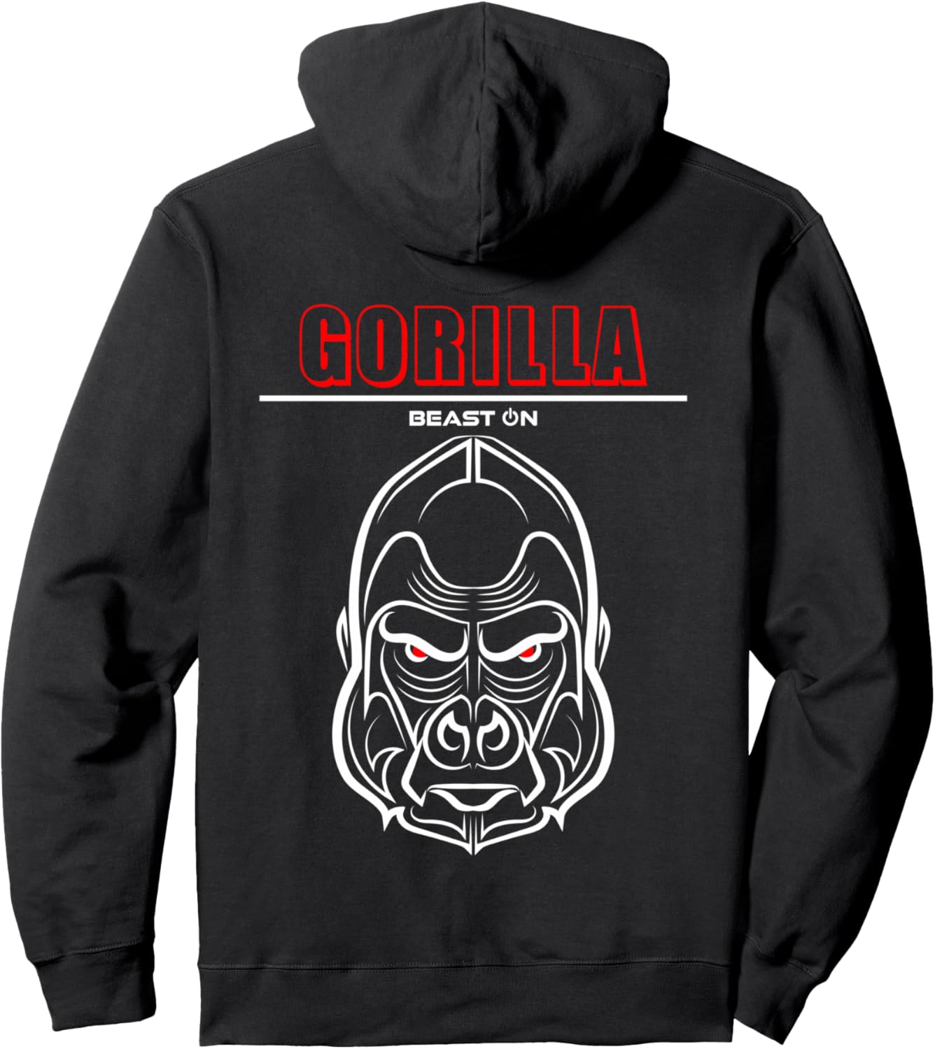 Gorilla Kopf Rot Rücken Motiv Gym Workout Fitness Training Pullover Hoodie