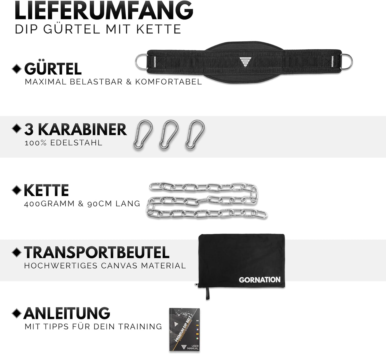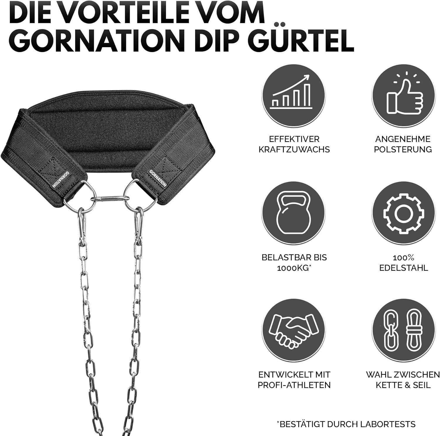 - DESIGNED MIT ❤️ IN DEUTSCHLAND | Der GORNATION Dip Gürtel wurde in Zusammenarbeit mit professionellen Athleten & dem Anspruch entwickelt, einen belastbaren, langlebigen Dip Belt für dein Training zu schaffen.