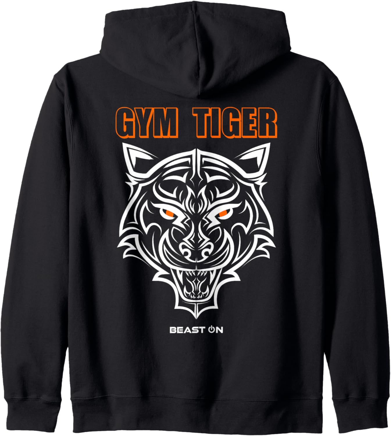 Gym Tiger Kopf Orange Rücken Design Workout Fitness Training Kapuzenjacke