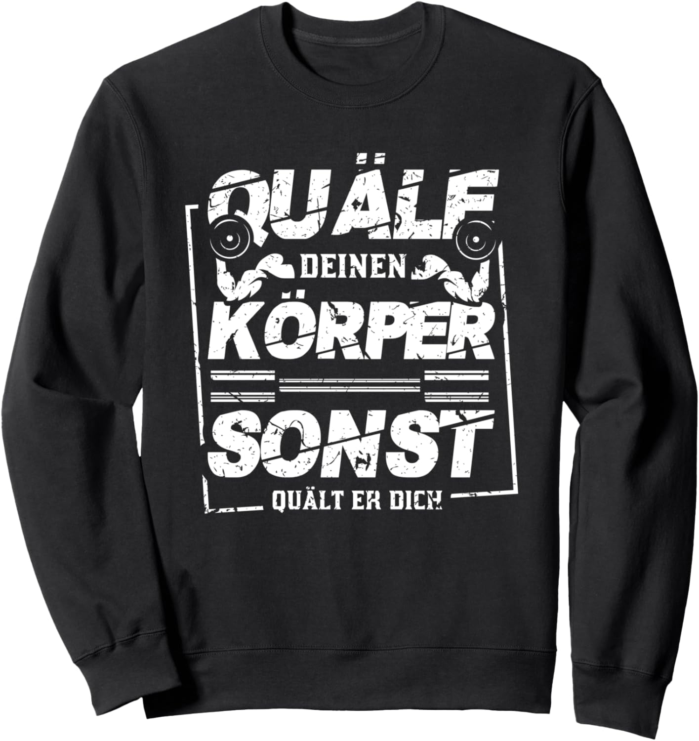 PRODUKTBESCHREIBUNGEN Quäle deinen Körper - Sonst quält er dich! Ein tolles Produkt, das ideale Geschenk für jeden der im Gym oder Fitnessstudio Workout, Fitness, Bodybuidling oder Cardio macht und Kraftsport liebt. Eine ausgefallene Geschenkidee für alle, die das Thema Ausdauer, Motivation, Trendsport und Warmup lieben. Mehr