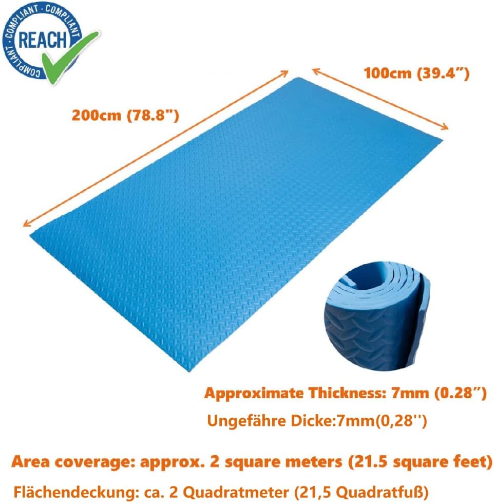 - 💪 Universell einsetzbar: kann als Unterlegmatte für Fitnessgeräte oder auch als Yoga- oder Sportmatte für Sport und Yogaübungen genutzt werden oder auch als Fussbodenbelag im Keller, Wohnmobil usw.