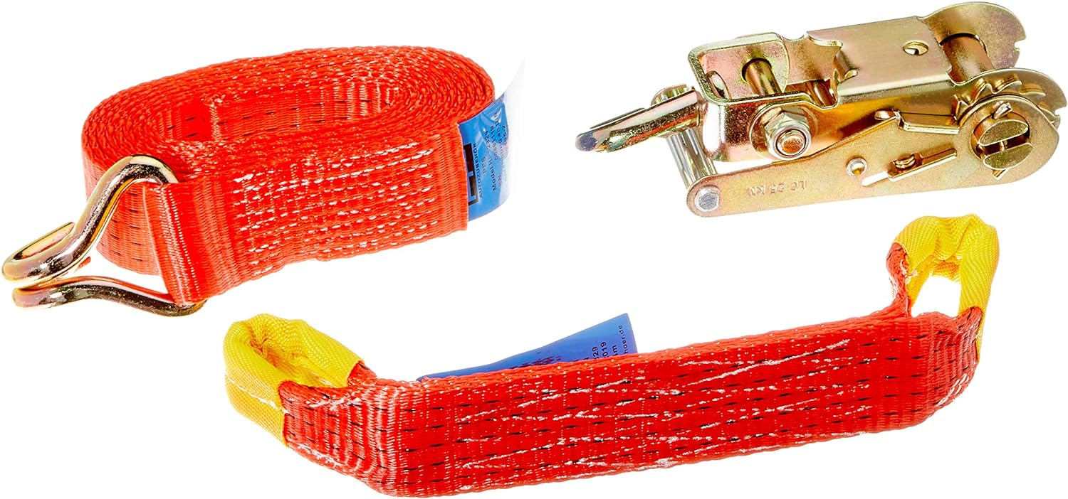 - bestehend aus einer Druckratsche mit eingebauten Spitzhaken, Zurrgurtband 50 x 3500 mm länge mit Spitzhaken, Verbindungsband mit Endschlaufen 400 mm